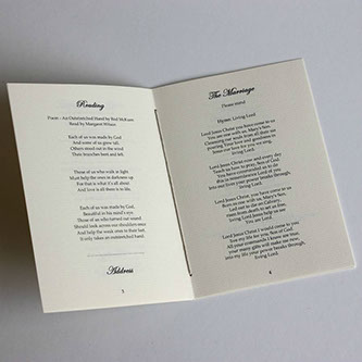 We specialise in these items, and offer advice and help with their design and layout, offering a wide choice of paper and card on which to print them - all the personal touches that make them special.